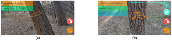 Rendering status during measurement of DBH. (a) single-frame fitted DBH; (b) multi-frame fitted DBH.
