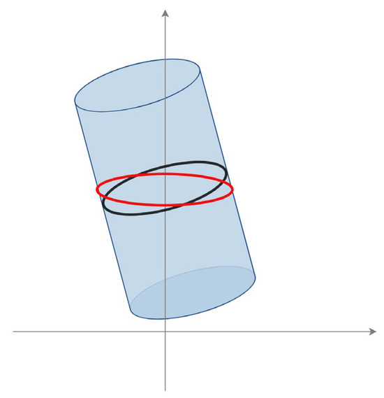 In contrast, this study uses cutting plane constraints to effectively solve the error caused by measuring inclined trees, as shown in Figure 19. RGB-D SLAM tree measurement systems and LiDAR point cloud DBH extraction usually use horizontal slices to extract point clouds for fitting, often fitting into the red circles shown in Figure 19, for measuring inclined trees, while cutting plane constraints can fit into the black circles. It is well known that an inclined cylinder’s slanted circumference is greater than its base’s circumference; therefore, algorithms without cutting plane constraints often lead to an overestimation of results. Figure 20 further shows the results of testing 30 inclined trees using the RGB-D SLAM tree measurement system (Figure 20A) and the system proposed in this paper (Figure 20B), showing that the RGB-D SLAM system generally leads to an overestimation when dealing with inclined trees. This problem is efficiently resolved in this paper.