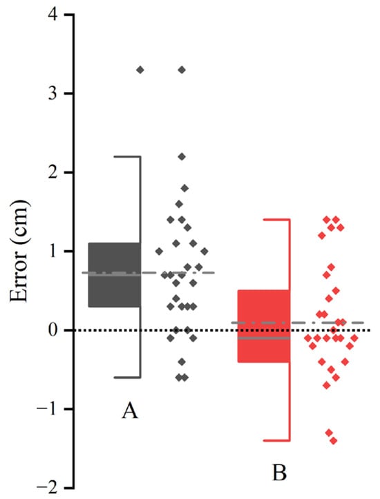 In contrast, the methodology developed in this research shows more minor errors, which may be related to the supervisory effect provided by augmented reality. However, accurately displaying the top of the trees on a screen poses a challenge, particularly in forests with dense canopies. Users need to move to a position where they can observe the treetop [44], preferably at a horizontal distance from the tree similar to its height, to minimize the visual disparity effects induced by angles, which are more pronounced for taller trees. Meanwhile, with their aerial advantage, ALS, ULS, and UAVimage provide more reliable tree height data for taller trees, contrary to this study’s trend. On the other hand, PLShh shows a balanced performance across different tree height ranges, which this study has not achieved. Hence, future research must provide solutions for measuring taller trees and conduct extensive experimental validation. Other studies showed [44] that tree heights less than 20 m have a higher accuracy, with BIAS values approximately between −0.83 m and 2.08 m and RMSE values between 0.46 m and 2.44 m, consistent with the results of this study.