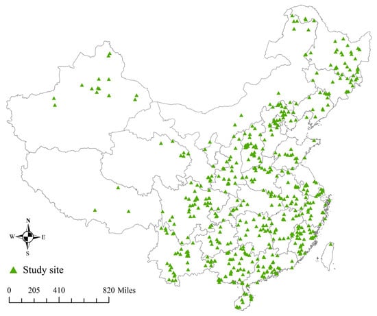 Distribution of study sites in China.