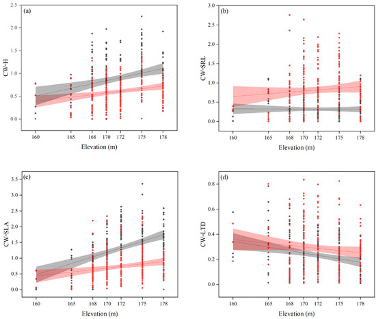 3.3. Response of Functional Traits at the Community Scale to Elevation