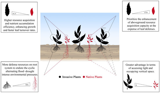 Cheng, L.; Yuan, X.; Sun, K.; Li, P. Functional Segregation of Resource Utilization Strategies between Invasive and Native Plants and Invasion Mechanisms in the Water Level Fluctuation Zone: A Case Study of Pengxi River in Three Gorges Reservoir, China. Forests 2024, 15, 959. https://doi.org/10.3390/f15060959