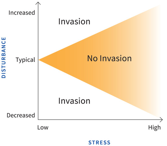 Conceptual model showing the relationship between stress, disturbance, and invasion (adapted from Alpert et al. [6]). Source: VHB, Inc., used with permission.