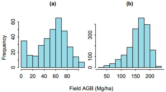 3.1. Forest AGB Characteristics in the Two Study Regions
