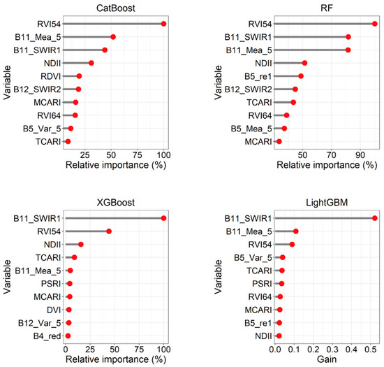| Spectral variables | 10 | B2_ blue, B3_green, B4_red, B5_re1, B6_re2, B7_re3, B8_NIR, B8a_nNir, B11_SWIR1, B12_SWIR2 | Band2-Blue, Band3-Green, Band4-Red, Band5-Vegetation red edge, Band6-Vegetation red edge, Band7-Vegetation red edge, Band8-NIR, Band8A-Narrow NIR, Band11-SWIR, Band12-SWIR |