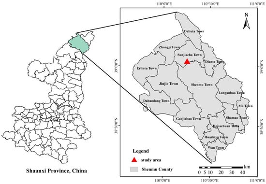 As shown in Figure 1, the study area is located in a coal mine in the northwestern region of Shenmu City, Shaanxi Province, China. The primary landform types in this area include wind-sand plains, river-valley terraces, and loess hills and gullies. This is a planted forest with an area of about 8 ha, and the average tree density is 391 ha−1. The main tree species in this forest are poplars. We selected three plots from the area as experimental data. For detailed information on these plots, please refer to Plot 1, Plot 2, and Plot 3 in Table 1.
