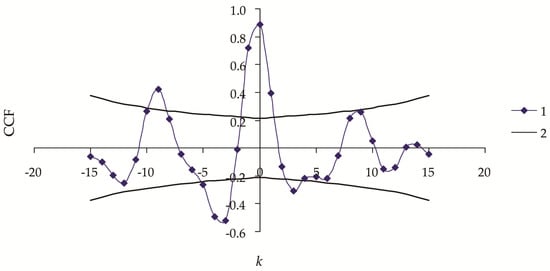 We can conclude from Figure 5 that the data series and the model series are synchronous, judging by the CCF being close to 1.0 when shift k = 0.