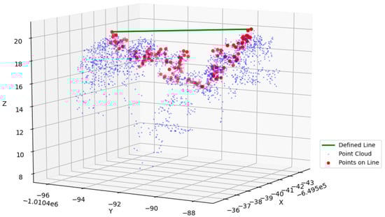 First, the outlier points were removed using PDAL filters.outlier. This method was based on Rusu [30] statistical filtering (comparing points with calculated global statistics like mean and standard deviation of point clouds) or radius filtering (number of neighboring points in a given radius). In this case, statistical filtering was used with 15 neighbors and the multiplier was set to 2. Further, the classification of points representing the ground was applied. For this, a cloth simulation filter presented by Zhang [31] was used (PDAL filters.csf function). As the scan lines could be unevenly spaced, a point cloud decimation approach was used. Knowledge of scanning parameters is crucial at this stage to correctly set the decimation and prevent unnecessary data loss. In this case, based on laser data acquisition settings, decimation was set to 20 cm.
