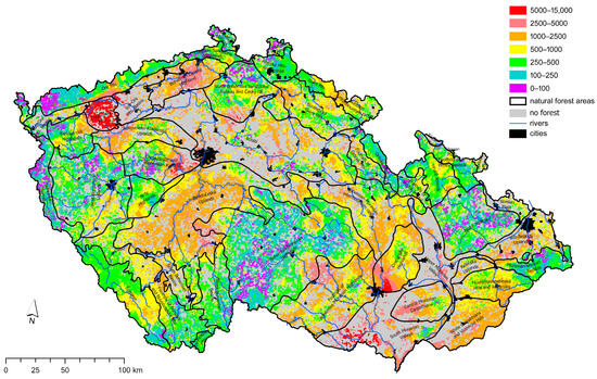 - ÚHÚL Forest Area and Forest Cover in the Czech Republic. Available online: https://www.uhul.cz/plocha-lesa-a-lesnatost-v-ceske-republice/ (accessed on 26 May 2024).