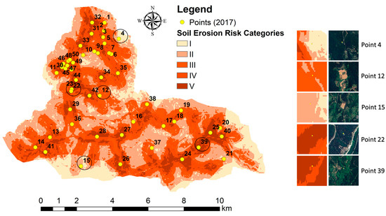 Erosion is defined as a natural process when the rate of soil loss and soil formation are equal; however, soil loss that exceeds soil formation due to deforestation, unwise agricultural practices and policies, and human activities is considered as “accelerated erosion” and leads to serious environmental problems [1,2,3,4,5]. The main cause of accelerated soil erosion, which has significant effects on the carbon cycle, nutrient cycle, land productivity, and therefore socio-economic conditions, is shown to be anthropogenic activities and associated land use changes. Soil erosion, which can be determined by the interaction of many factors, poses a serious threat to sustainability as well as soil and water resources and is shown to be the primary cause of soil degradation [6,7,8].