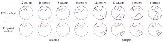 Comparative imaging results of samples 3 and 4 with decreasing number of sensors.