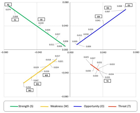 It is desirable for SWOT analysis to be performed by organization managers who are well acquainted with it but in cooperation with external consultants (who have special analytical skills and independent viewpoints) for objectivity. Analyzing the environment through a detailed list of favorable and unfavorable factors stimulates the research effort and provides reality in defining strategies. SWOT analysis is quick and simple, and according to the authors of [18,77], it can be adapted as a factor identification tool that influences an organization’s activities and provides solutions for the development of a future strategy.