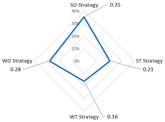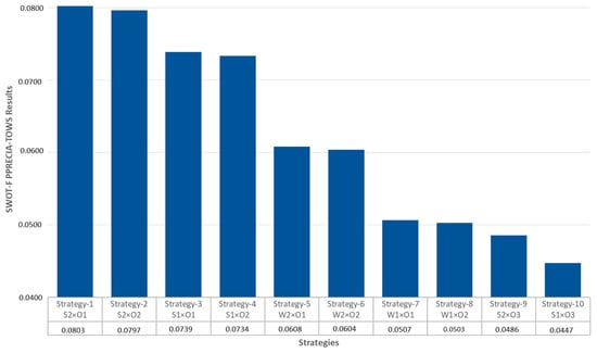 TOWS analysis is an enhanced method to derive strategies using the results of the SWOT analysis. In TOWS, SWOT can be written in reverse, which was originally introduced in [102] for the formation of company strategies [103]. For a TOWS analysis, threats and opportunities are examined first, then weaknesses and strengths. After creating a list of threats, opportunity, weakness, and strength strategies are formulated to find out how advantages of opportunities and minimization of threats can be developed by exploiting strengths and overcoming weaknesses [103]. TOWS analysis can produce four sets of strategies with combinations of SWOT sub-criteria in a matrix (Table 4) [104,105,106].