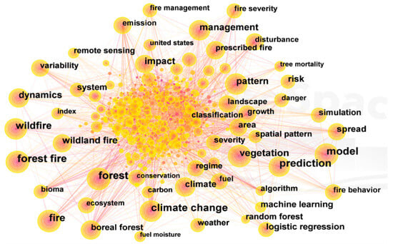 Keyword cluster map for wildland fire prediction research.