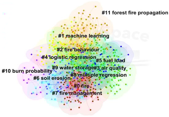 The third cluster focuses on the environmental impacts of wildfires, emphasizing studies on climate change and soil erosion. This research area encompasses studies related to fire (#0), air quality (#3), soil erosion (#6), and fire management (#7), utilizing keywords such as prescribed burning, soil erodibility, support vector machines, and decision-support tools. Recognizing the substantial environmental damage caused by wildfires, including widespread air pollution, black carbon emissions, and accelerated soil erosion, researchers are increasingly employing tools like machine learning to predict pollution levels and assess the environmental consequences of wildfires [,].