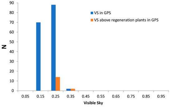 VS distributions from the photographs taken in the good productivity sites (GPS) and from the photographs taken above the regeneration plants in the same sites.
