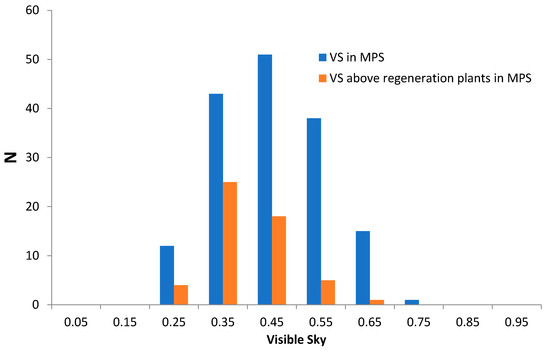 VS distributions from the photographs taken in the medium productivity sites (MPS) and from the photographs taken above the regeneration plants in the same sites.