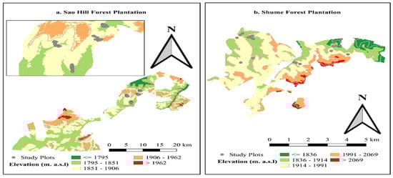 - Lovett, J.C. Elevational and latitudinal changes in tree associations and diversity in the Eastern Arc Mountains of Tanzania. J. Trop. Ecol. 1996, 12, 629–650. Available online: https://www.jstor.org/stable/2559966 (accessed on 23 November 2023). [CrossRef]