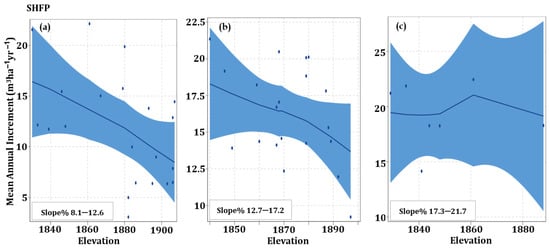3.3. Effects of Elevations and Slope Percentage on Forest Productivity within Site Classes at Sao Hill and Shume Forest Plantations in Tanzania