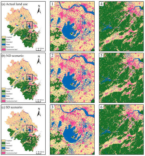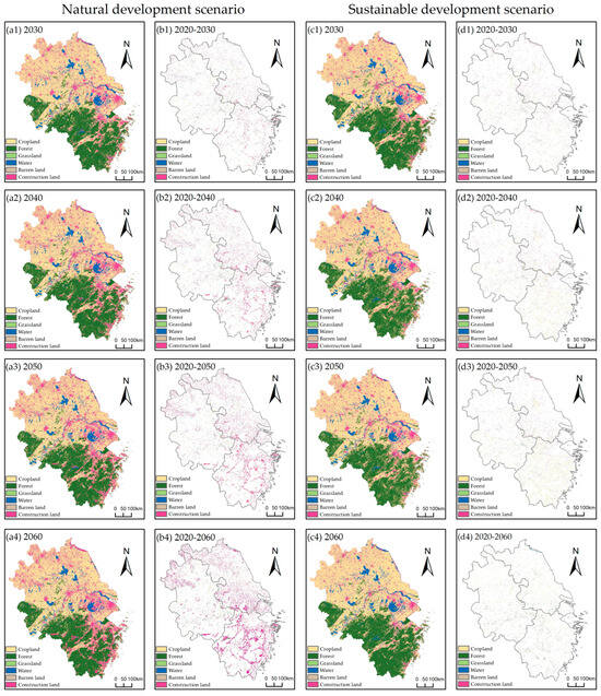 3.2.2. Changes in the Spatial Patterns of Future Land Use during 2030–2060