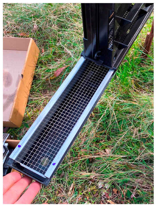 In general, pheromone traps of various designs are used for insect attraction, mostly for evaluating population densities, i.e., monitoring. Mass trapping is an exception [19,20,21]. Concerning the design and placement of pheromone traps, there is a large number of studies in the literature, especially for the most researched species of bark beetle: I. typographus [22,23,24,25]. In designing optimal lures and pheromone traps for the MPE as a target species, Erosowit® (Witasek, Feldkirchen, Austria) has exhibited significantly higher catch rates compared to Pheroprax® (BASF, Ludwigshafen, Germany) and it has also been significantly more selective, while single Theysohn traps (Theysohn, Salzgitter, Germany) have been shown to be an optimal solution [18]. Although traps are designed to target specific insects, such as other bark beetle species, many other species are also attracted. Mass trapping can unintentionally remove high numbers of predators that use bark beetle pheromones as kairomones [19] (Aukema et al., 2000), and such negative side effects have negative impacts [26]. For example, in the pheromone Pheroprax®, components like ipsenol, ipsdienol, and (S)-cis-verbenol are responsible for attracting the antagonist Thanasimus dubius Fab. (Coleoptera, Cleridae) (Aukema et al., 2000). Pheromone traps have been used in Marjan to attract the MPE since 2018. Early on, it was apparent that many specimens of Temnoscheila caerulea Olivier (Coleoptera, Trogossitidae), an important predator of bark beetles, were present along with the target organism. This is concerning [19], because four or more generations of MPE have been detected each year [2,27], and a high capture rate of natural enemies should be avoided even if the traps are intended for monitoring or mass trapping. According to Martin et al. [28], the number of catches of T. caerulea could be reduced by modifying the pheromone traps.