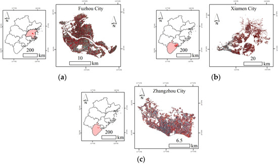 | Landsat 8 | 100 m | 06/01/2020–09/01/2020 | 12/01/2020–03/01/2021 | Constructing summer and winter LST for Fuzhou, Xiamen, and Zhangzhou | Eleven bands covering visible, near-infrared, shortwave infrared, and thermal infrared bands. |