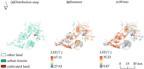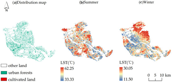 - In this study, we focused solely on urban forests, but urban forest composition—e.g., tree species diversity, age structure, canopy coverage, and the mix of trees and shrubs—also significantly impacts the urban thermal environment. Future research will need to incorporate urban forest composition into the analysis.