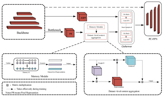 As shown in Figure 5, after an image is fed into the backbone network, the generated feature vectors are processed in different branches, some of which are fed into Cloformer [33] after ASPP [34], while others are fed into Cloformer through the memory module and the cross-image information mining module. Finally, these two parts, together with the feature vectors directly output from the backbone, are fused and fed into the partially looped feature pyramid.