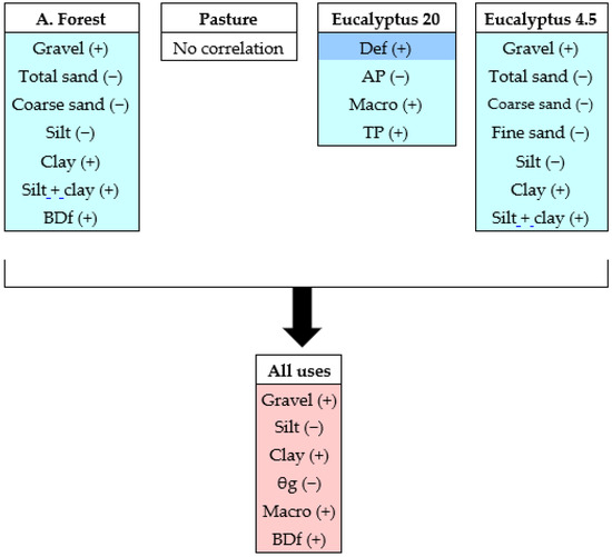 - Suzuki, L.E.A.S.; Lima, C.L.R.; Reinert, D.J.; Reichert, J.M.; Pilon, C.N. Condição estrutural de um Argissolo no Rio Grande do Sul, em floresta nativa, em pastagem cultivada e em povoamento com eucalipto. Ciênc. Florest. 2012, 22, 833–843. [Google Scholar] [CrossRef]