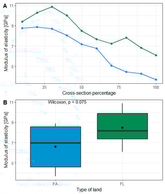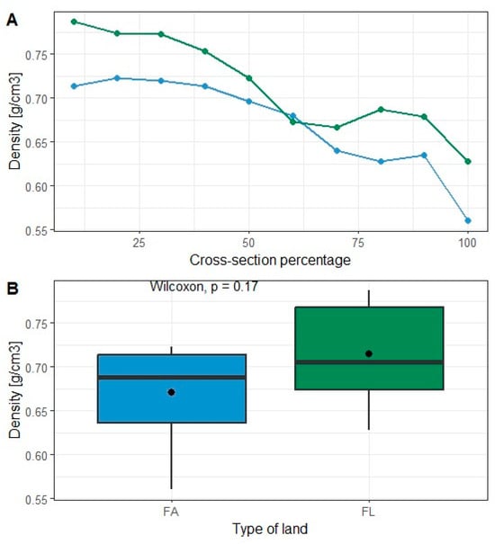 - Changes in wood properties on the cross-section of the trunk will not be comparable for both types of land, especially close to the pith zone.