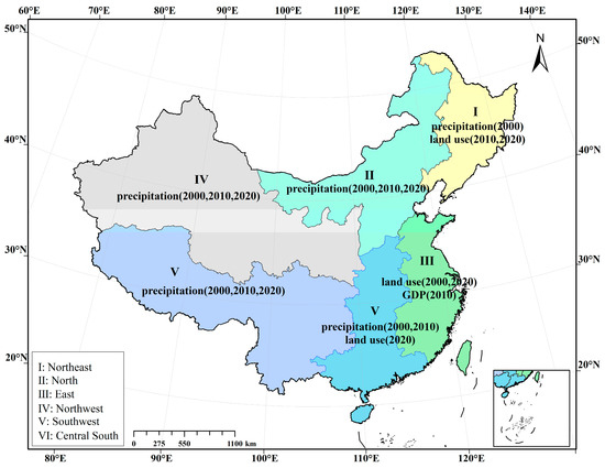 - Precipitation was the dominant factor that had the strongest influence on vegetation cover in Northeast China, North China, Northwest China, and Southwest China. Land use and GDP had the strongest influences on vegetation cover in East China. Precipitation and land use had the strongest influences on vegetation cover in Central–South China.