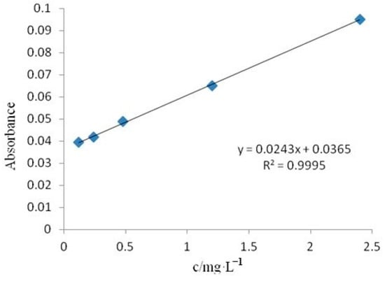 In this experiment, the photocatalytic activity of the obtained wood samples was evaluated through the degradation of rhodamine B aqueous solution using photocatalysis. Figure 1 shows the standard curve depicting the variation in absorbance of rhodamine B aqueous solution with concentration.