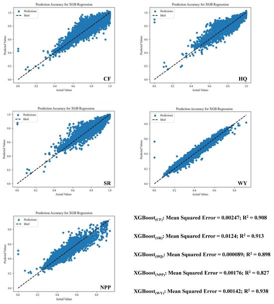 where is the set of all features, is the set of features that do not contain of any subset, and is the set of features of the contribution to the prediction. The SHAP value quantifies the marginal contribution of each feature to the final prediction by averaging all possible combinations of features. The model accuracy is shown in Figure 2. In this study, the XGBoost machine learning model was constructed using the Python language, and each key parameter was set as follows: learning rate 0.02; n_estimators 88; max_depth 7; Min_child_weight 2.
