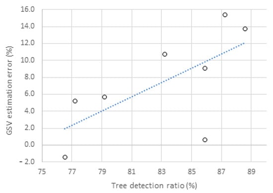 Relationship between tree detection ratio and GSV estimation error.