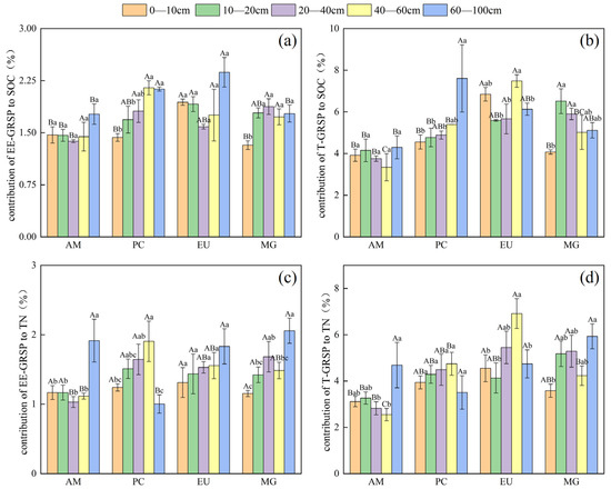 4.2. Variation in Concentration and Contribution to Carbon and Nitrogen of GRSP in Deep Soil