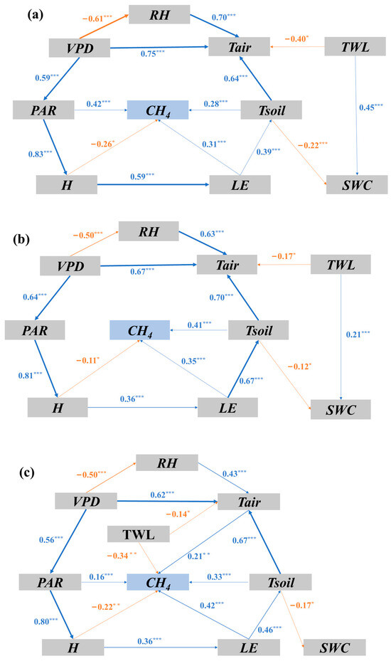 - Li, J.; Pei, J.; Fang, C.; Li, B.; Nie, M. Opposing seasonal temperature dependencies of CO2 and CH4 emissions from wetlands. Glob. Chang. Biol. 2022, 29, 1133–1143. [Google Scholar] [CrossRef]