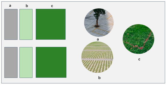 Urban hardened-surface type. (a) totally impervious cover (TIC); (b) partially impervious cover (PIC); (c) Turf surface cover (TC).