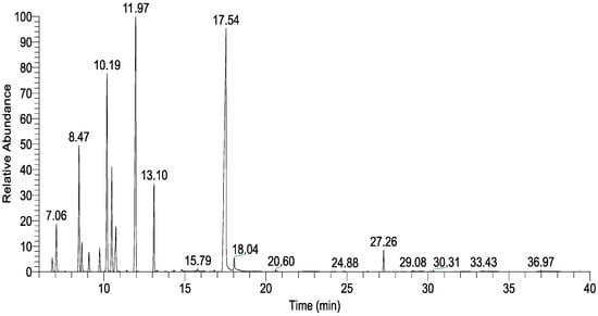 Gas chromatogram of Liquidambar formosana leaf essential oils.