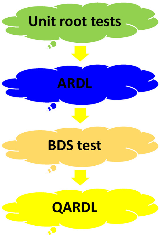 One of the greatest strengths of the ARDL and QARDL is their ability to offer short and long-run estimates at once [71]. Moreover, accounting for the integrating properties of the variables makes these methods so special as they can estimate the model even with I(0) and I(1) variables. However, these methods do not allow the I(2) variable to be included in the model [72]. Further, the QARDL requires a long data series; for this, we need to convert yearly data into quarterly, which is a major limitation of this technique [73].