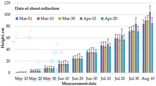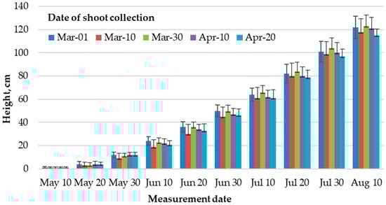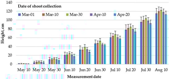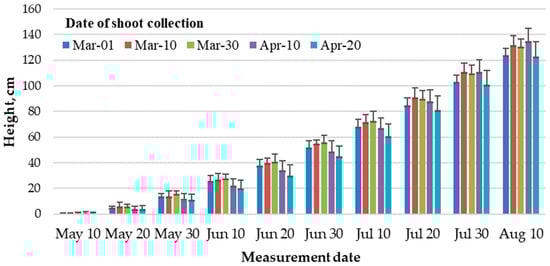 Height (cm) of the hybrid P. maximowiczii × P. trichocarpa (Arges) depending on shoot collection date.