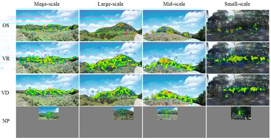 Heat map for different landscape scales. Notes. Since ordinary photos cover a smaller angle than other methods, the image size ratio is not guaranteed to be the same, and gray is used to fill in the unfilmed areas.
