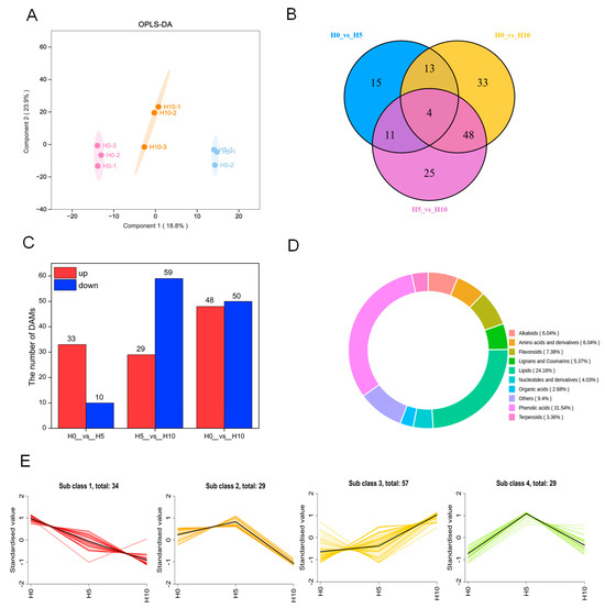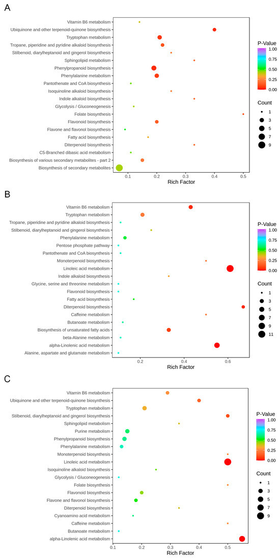 3.2. Metabolomic Changes at Three Growth Stages