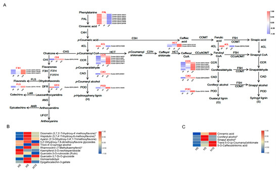 3.4. DEGs and DAMs Related to Lignin and Flavonoid Synthesis