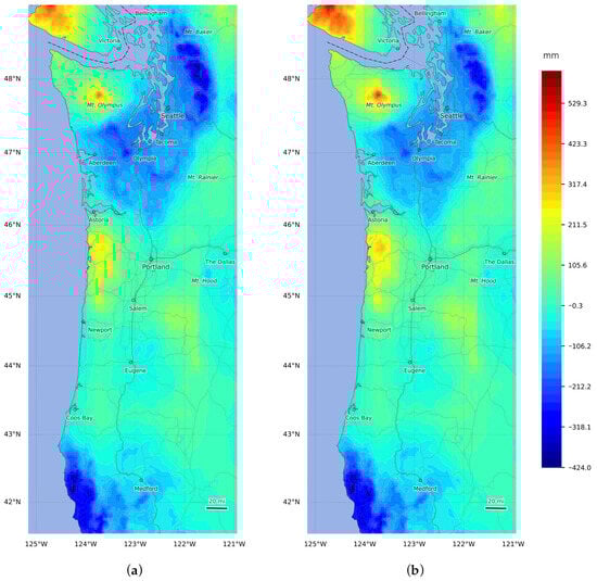 Projected changes in MAP from 2015 to (a) 2055 and (b) 2085 in the PNW.