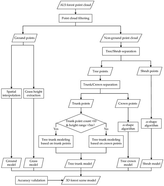 Technical route for 3D forest scene modeling based on ALS point cloud.