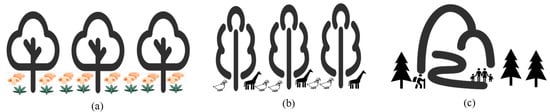 Different models for the development of the non-timber forest products industry: (a) understory cultivation (e.g., mushroom cultivation, cultivation of medicinal herbs); (b) understory farming (e.g., raising geese, sika deer); (c) forest ecotourism.