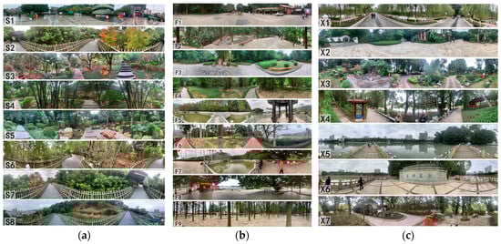 In this study, we conducted an in-depth investigation of three urban parks in Fuzhou City and selected 24 sample sites for intensive research, as shown in Figure 2 and Figure 3. Within the study, Jinniushan Sports Park encompasses eight designated sample locations, identified as S1 through S8; Fuzhou National Forest Park features nine such sites, denoted by F1 through F9; and Xihu Park comprises seven sites, marked X1 through X7.