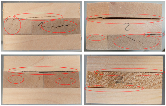 - Ammann, S.; Niemz, P. Mixed-mode fracture toughness of bond lines of PRF and PUR adhesives in European beech wood. Holzforschung 2015, 69, 415–420. [Google Scholar] [CrossRef]