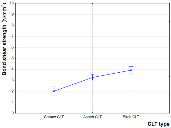 - The aspen and birch CLTs met the minimum criterion for bond shear strength of 1 N/mm2 set by EN 16351 [11]. The bond shear strength values were 73.7% (aspen) and 105.3% (birch) higher than for the spruce CLT.
