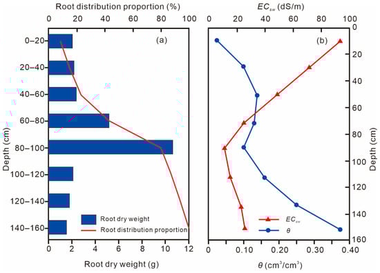 - Li, H.; Yi, J.; Zhang, J.; Zhao, Y.; Si, B.; Hill, R.L.; Cui, L.; Liu, X. Modeling of soil water and salt dynamics and its effects on root water uptake in Heihe arid wetland, Gansu, China. Water 2015, 7, 2382–2401. [Google Scholar] [CrossRef]
